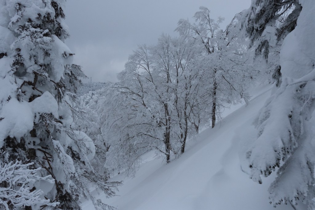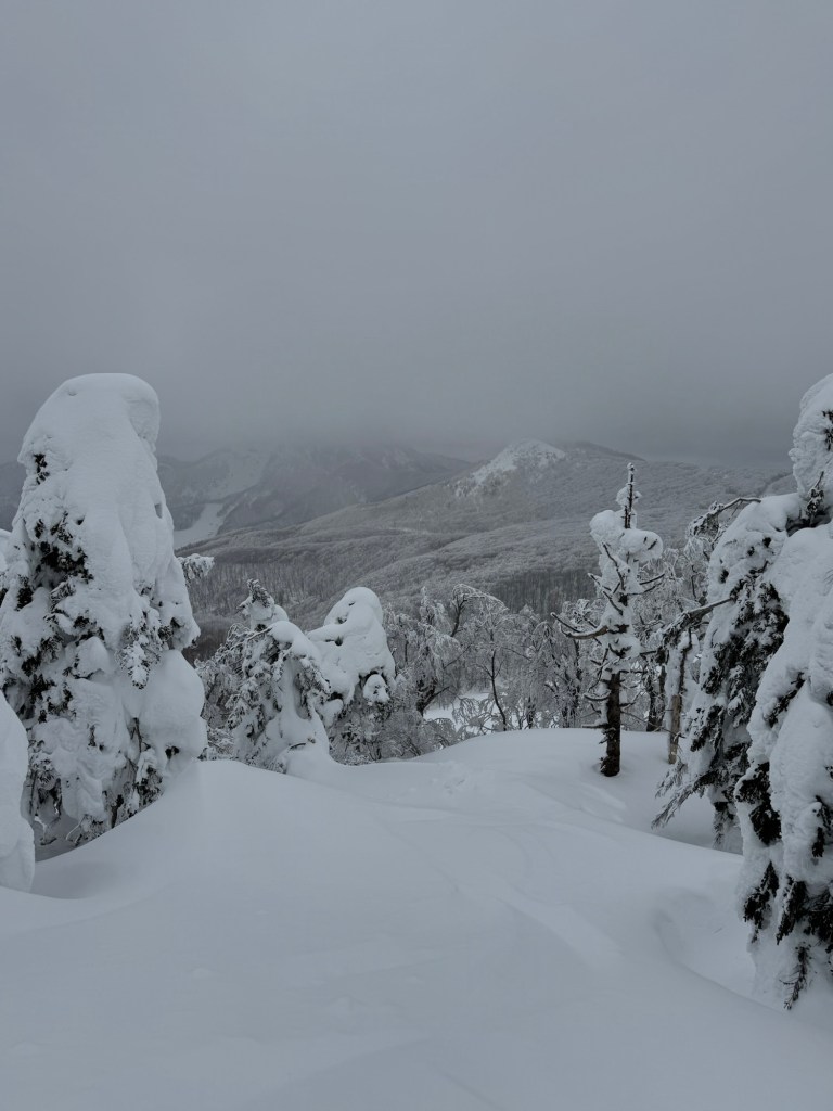Zao Onsen has a few resorts around the mountain, so it’s relatively easy to get around. I usually head straight to the top and down to this north-facing ridgeline that has lots of short, lappable routes, with two chairlift rides back to the start, a retaining wall that you can blast off from in the right conditions, and the chance to ski with the 樹氷 (snow monsters). It’s probably my favorite in-bounds area to ski in the world.
